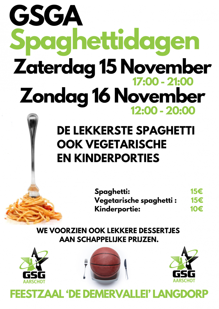 Op Zaterdag 15/11 en zondag 16/11 is er ons Spaghettiweekend.